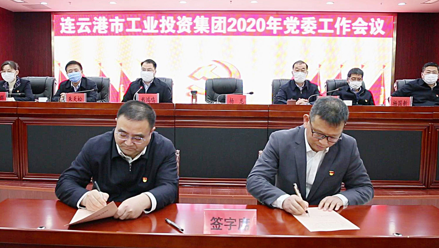 楊龍代表集團公司黨委與各單位、部門(mén)代表現場(chǎng)簽訂了《全面從嚴治黨責任書(shū)》。