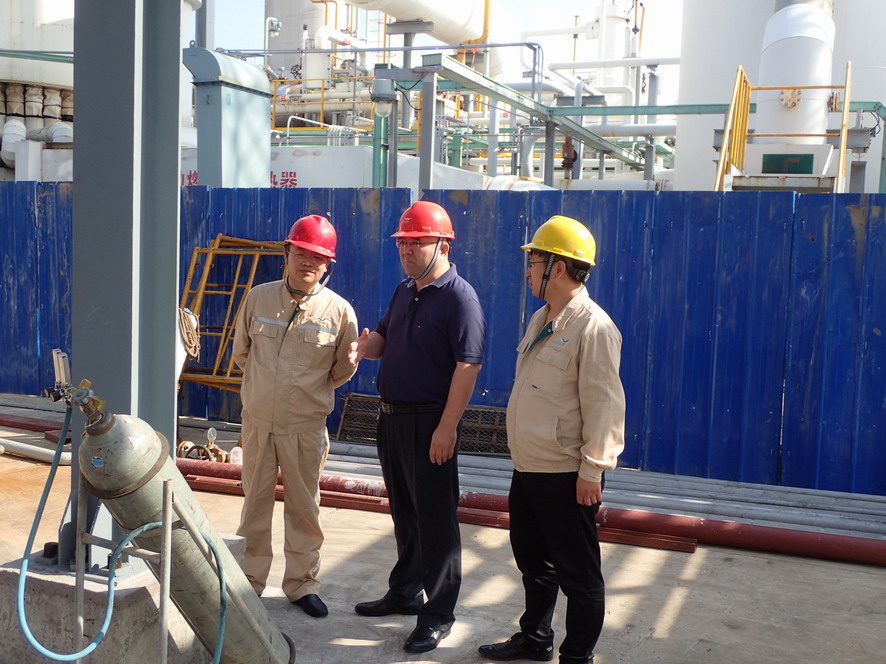 楊龍一行實(shí)地查看了氯堿公司氫氣純化技改項目、天然氣制氫壓縮機廠(chǎng)房現場(chǎng)和氨綸公司精制罐區、危廢庫等重點(diǎn)區域,就相關(guān)設備運行、安全防范情況進(jìn)行詳細了解。楊龍強調,新中國成立70周年即將到來(lái),要把安全工作當成一項重要的政治任務(wù),認真做好各個(gè)重點(diǎn)部位、關(guān)鍵裝置等環(huán)節的排查和治理,提高專(zhuān)業(yè)化水平,做到立行立改。要提高安全生產(chǎn)意識,認真落實(shí)好安全檢查、節假日應急管理和值班制度,強化對設備的檢查維護和隱患整改,確保節日期間安全生產(chǎn)平穩運行。