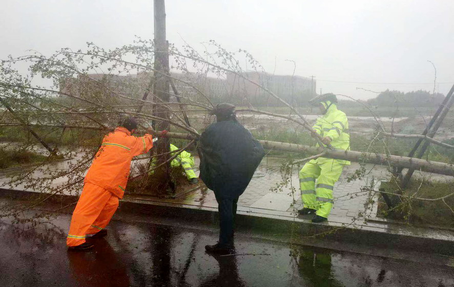 受9號臺風(fēng)“利奇馬”影響,港城迎來(lái)大風(fēng)和強降雨天氣。華茂綠化工程公司全體員工奮戰在一線(xiàn),全力做好惡劣天氣的應對工作,保障居民道路出行安全。