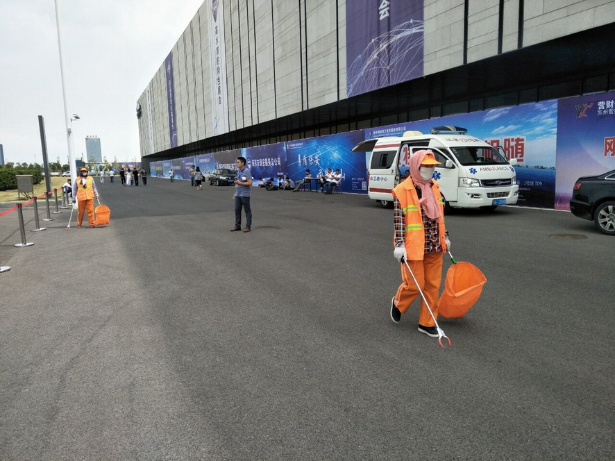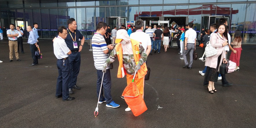 9月14日,連續忙碌了兩個(gè)禮拜的職工們還沒(méi)來(lái)得及休息,便又投入到“連博會(huì )”的準備工作中去。由于本屆“連博會(huì )”共有來(lái)自27個(gè)國家和地區的420家企業(yè)參展,展覽總面積達3.7萬(wàn)平方米,各家展商在布置展臺時(shí),各類(lèi)生活垃圾、裝修垃圾等一度將該公司布設的100多個(gè)垃圾桶都塞滿(mǎn)了,在安排好人工清理的同時(shí),該公司還安排垃圾清運車(chē)對積存垃圾進(jìn)行清理清運,組織灑水車(chē)對會(huì )場(chǎng)及周邊道路進(jìn)行沖洗,一直到9月18日晚上9點(diǎn)左右才完成準備工作。19日“連博會(huì )”開(kāi)幕當天,負責現場(chǎng)保潔工作的職工們早上6點(diǎn)多就趕到了會(huì )場(chǎng),冒雨在會(huì )場(chǎng)周邊開(kāi)始忙碌,一臺大型清掃車(chē)和一臺灑水車(chē)也在會(huì )場(chǎng)旁隨時(shí)待命。到了中午,當展商們在室內小憩的時(shí)候,室外的職工們?yōu)榱瞬坏⒄`事,站在風(fēng)口匆匆地扒拉兩口混雜著(zhù)雨水的盒飯,就又投入到緊張的清理工作中去。僅19號開(kāi)幕當天,累計清理各類(lèi)垃圾7噸左右,為“連博會(huì )”的正常召開(kāi)提供了一個(gè)干凈、整潔的會(huì )場(chǎng)環(huán)境。