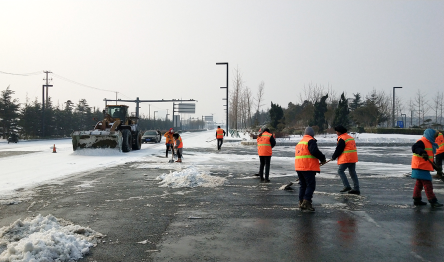 由于28日最高氣溫只有1度,路面積雪很難融化,當天又恰逢周末,是居民大量外出的時(shí)段。為了確保人、車(chē)流高峰期間交通安全,華茂公司職工放棄周末休息,精心組織,緊密協(xié)調。從早上7點(diǎn)起,就組織工人在花果山大道、黃海大道、東方大道、新光路下穿涵洞、火車(chē)站匝道等路段撒布氯化鈣,加速積雪融化,防止路面低溫降雪產(chǎn)生冰凍,為及時(shí)掃除冰雪和確保居民正常出行提供保障。該公司組織職工近300人次,鏟車(chē)、平板車(chē)、裝載機、工程車(chē)輛等作業(yè)機械十余臺(班)投入到掃除積雪工作中去,使用氯化鈣十余噸。截止28日下午4時(shí),經(jīng)過(guò)近一天的緊張作業(yè),各條主干道積雪基本清理完畢,道路恢復通暢。