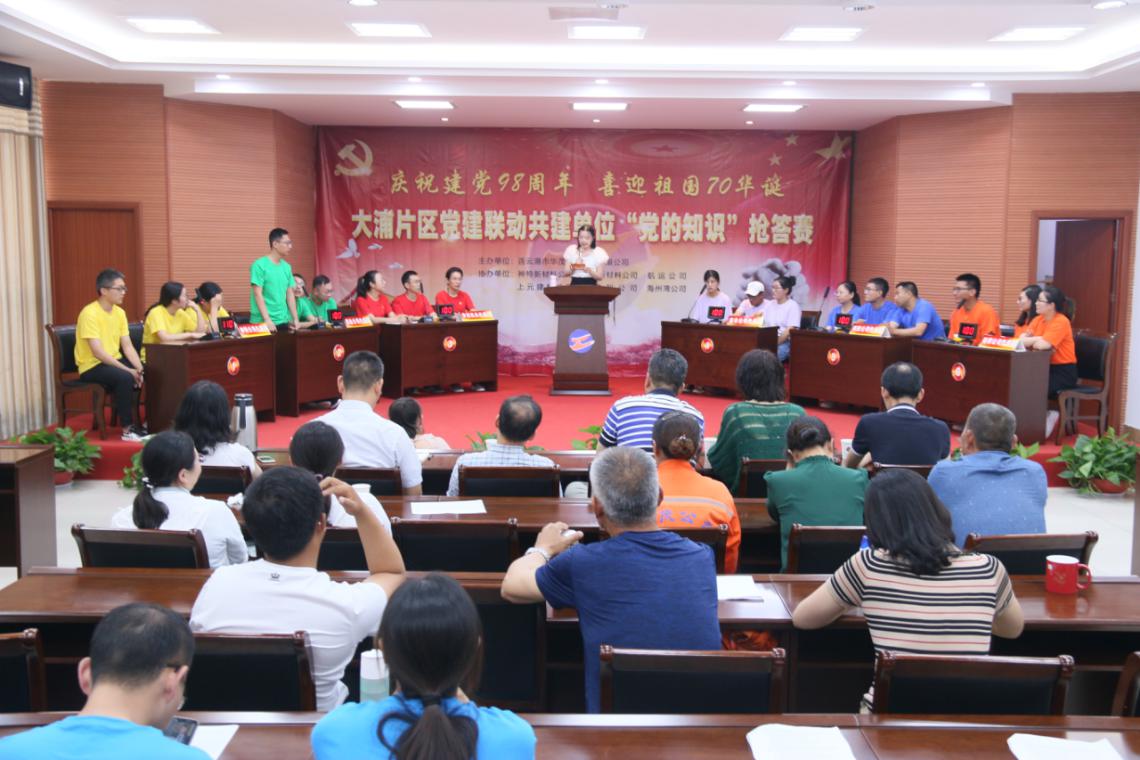 6月29日,大浦片區“1+6”黨建聯(lián)動(dòng)共建單位再次相聚華茂,聯(lián)合舉辦“慶祝建黨98周年,喜迎祖國70華誕”“黨的知識”搶答賽活動(dòng),共建單位領(lǐng)導及黨員代表觀(guān)看了比賽。