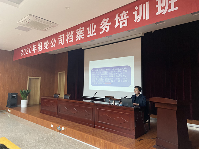 為全面提升氨綸公司檔案工作科學(xué)化、標準化、規范化水平,2020年4月3日,氨綸公司檔案業(yè)務(wù)專(zhuān)題培訓在多功能廳舉行。此次培訓公司邀請到市檔案館業(yè)務(wù)指導處徐繼銘處長(cháng)專(zhuān)程來(lái)我公司進(jìn)行指導教學(xué)。公司各部門(mén)主管、檔案管理員、兼職檔案員參加培訓。