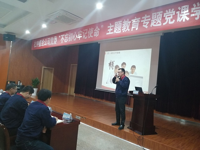 11月9日,氨綸公司黨委召開(kāi)“不忘初心 牢記使命”主題教育專(zhuān)題黨課學(xué)習會(huì )。公司黨委書(shū)記趙萬(wàn)明同志圍繞“什么是初心、為什么要不忘初心、怎樣做到不忘初心”三個(gè)方面進(jìn)行了闡述、講解。學(xué)習會(huì )上,趙書(shū)記用生動(dòng)的案例闡明道理,用詳實(shí)的數據說(shuō)明問(wèn)題,與會(huì )代表產(chǎn)生了巨大共鳴。大家一致認為這通過(guò)堂學(xué)習會(huì )的學(xué)習,大家在精神上受到了洗禮,決心不忘初心、牢記使命,立足本職工作,推動(dòng)企業(yè)發(fā)展。公司領(lǐng)導班子成員、各部門(mén)助理及以上人員、管理部門(mén)所有員工和黨員代表參加學(xué)習會(huì )。集團指導組領(lǐng)導王果、王琪參加。