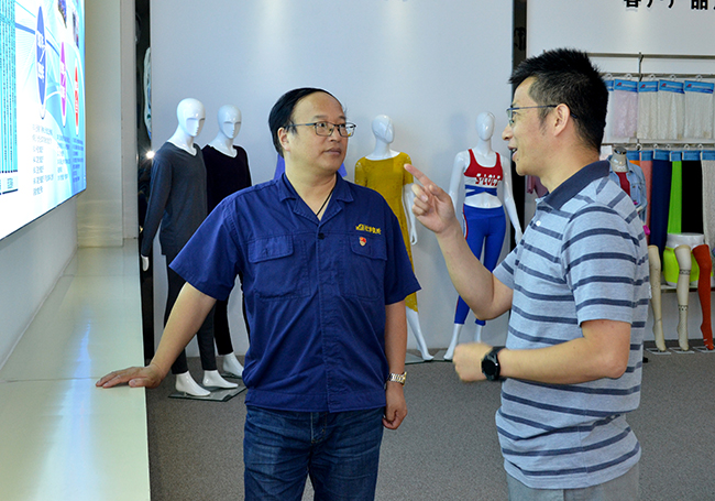 王鋒華總經(jīng)理一行先后參觀(guān)了展廳、八期生產(chǎn)車(chē)間,觀(guān)看了氨綸公司宣傳片。在座談會(huì )上,最后雙方在技術(shù)研發(fā)、氨綸市場(chǎng)走向等方面交換了意見(jiàn)。