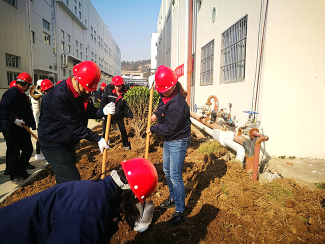 陽(yáng)春三月,又是一年芳草綠,春回大地,又到植樹(shù)造林時(shí)。2019年3月12日上午,正值第四十一個(gè)植樹(shù)節,氨綸公司各黨支部的黨員志愿者們響應“為氨綸增添新綠,創(chuàng )和諧綠色企業(yè)”號召,積極參與植樹(shù)活動(dòng)中來(lái)。