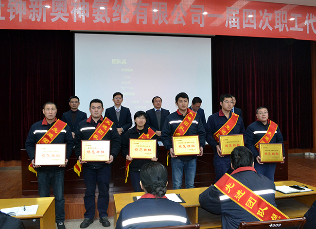 2019年1月25日,氨綸公司一屆四次職代會(huì )在多功能廳隆重召開(kāi)。公司領(lǐng)導層、部門(mén)主管、職工代表、獲獎代表齊聚一堂,共商發(fā)展之計。