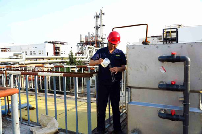 一直以來(lái),公司秉承“綠色發(fā)展”的理念,在具體操作中采用“掐頭截尾”法進(jìn)行污水排放綜合治理。“掐頭”即要求各責任部門(mén)強力監督治理源頭,實(shí)施廢液進(jìn)行循環(huán)利用,對違規部門(mén)要求限期整改,情節嚴重的追究相關(guān)責任人責任。“截尾”即抓污水處理工藝提升優(yōu)化,保證污水處理設備正常運行和污水處理質(zhì)量,不達標堅決不排放。與此同時(shí),主動(dòng)邀請環(huán)保部門(mén)和第三方權威機構對現有污水處理設備提供環(huán)保法規指導和技術(shù)支持,水樣檢測實(shí)現在線(xiàn)檢測,并與環(huán)保監控平臺聯(lián)網(wǎng),確保工業(yè)污水達標排放。