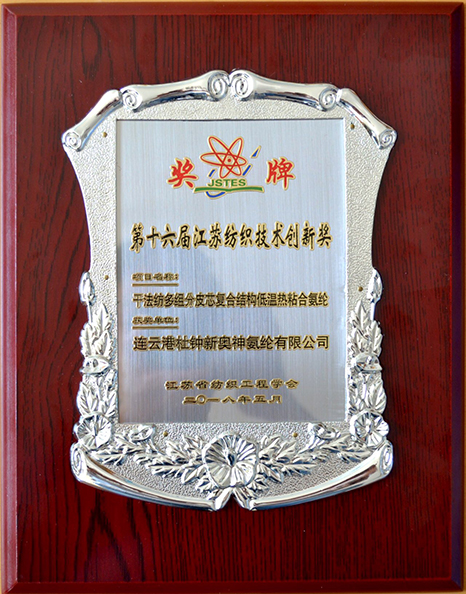 5月30日,江蘇省紡織工程學(xué)會(huì )第十一屆會(huì )員代表大會(huì )暨“中孚達杯”紡織學(xué)術(shù)年會(huì )在江蘇南京順利舉行。我公司“干法紡多組分皮芯復合結構低溫熱粘合氨綸”獲得第十六屆江蘇省紡織技術(shù)創(chuàng )新獎,并在會(huì )議現場(chǎng)以展板形式隆重展出。