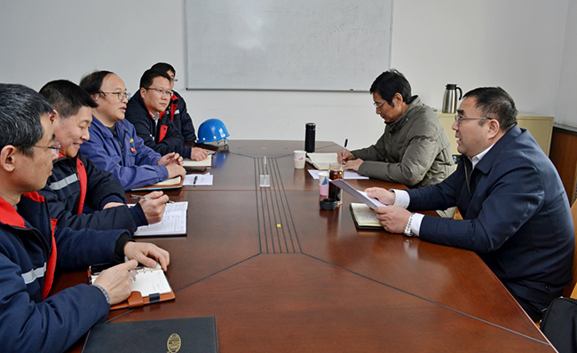 2018年3月22日,集團公司董事長(cháng)楊龍、副總經(jīng)理張其海赴氨綸公司開(kāi)展調研工作。楊董事長(cháng)一行實(shí)地查看了氨綸公司分布式能源設備安裝、八期工程建設施工現場(chǎng),并組織氨綸公司領(lǐng)導班子成員召開(kāi)了座談會(huì )。