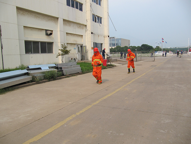 事前安全部做了充足的準備,從演練方案、材料準備和人員安排等方面做足準備工作,先是在會(huì )議室進(jìn)行了桌面演練,確定演練方案可行后,于15:00開(kāi)始正式演練。演練模擬四期二樓甬道間6線(xiàn)3#位導熱油發(fā)生泄漏起火,操作人員發(fā)現后,立即匯報并進(jìn)行現場(chǎng)應急處置。后險情擴大,公司領(lǐng)導啟動(dòng)應急預案,應急行動(dòng)組、現場(chǎng)控制組、后勤保障組各司其職,隔離現場(chǎng)、應急救援、疏散人員。后在消防人員的協(xié)助下,大火被成功撲滅。演練中,全體參演人員,精神飽滿(mǎn),恪盡職守,動(dòng)作規范,各部門(mén)通力合作,演練共用時(shí)間20分鐘,并安排微型消防站人員穿著(zhù)專(zhuān)用制服對現場(chǎng)進(jìn)行了巡視,確認無(wú)人受困,整個(gè)演練過(guò)程合計從車(chē)間疏散出38人,達到了通過(guò)應急演練鍛煉隊伍,檢驗應急預案的目的,演練達到了預期,取得圓滿(mǎn)成功。