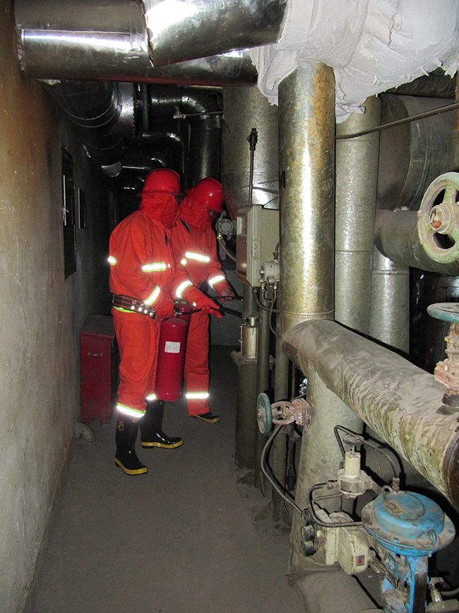 為增強員工安全意識,提高廣大員工面對突發(fā)事件時(shí)的應急應變能力,2017年8月10日下午3點(diǎn),公司安全部組織甬道間導熱油泄漏起火應急演練,50余名員工參與演練。