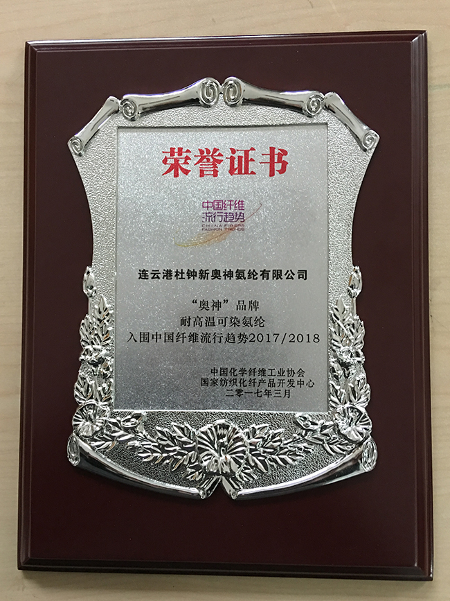 近年來(lái),氨綸公司緊緊把握流行趨勢,緊跟時(shí)代步伐,牢固樹(shù)立以“新品研發(fā)促企業(yè)發(fā)展”的戰略目標,將新品研發(fā)作為企業(yè)發(fā)展的核心,不斷加大研發(fā)投入,陸續開(kāi)發(fā)出超柔、耐高溫、有色、衛材等多系列產(chǎn)品,多項產(chǎn)品處于同行業(yè)前列。此次,氨綸公司“奧神”品牌耐高溫可染氨綸成功入圍“中國纖維流行趨勢2017/2018”,再次證明了我公司在新品研發(fā)和把握市場(chǎng)方面的實(shí)力,也進(jìn)一步擴大了“奧神”品牌的影響力。