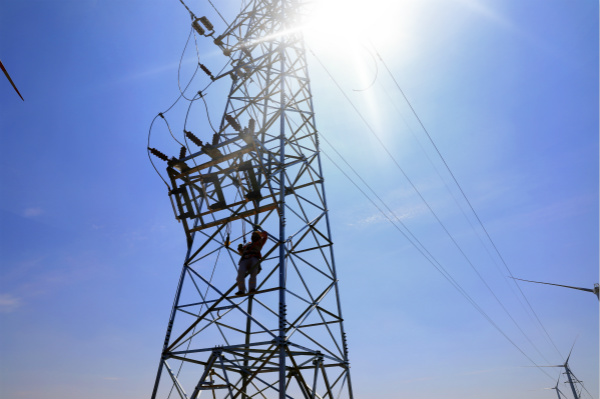 14至18日,灌西供電所轄區。為了保證7月18日順利完成和風(fēng)風(fēng)電西線(xiàn)線(xiàn)路工程,施工現場(chǎng)一片熱火朝天的景象,電力施工人員正頭頂烈日,揮汗如雨,正在緊張施工?!笆┕ぶ幸欢ㄒ⒁獍踩?,打好安全帶和保險繩,防止中暑”灌西供電所所長(cháng),施工總負責人馬德松囑現場(chǎng)施工人員。烈日中野外施工既拼體力,更拼毅力,施工材料被曬得燙手,鐵塔只能戴手套才能攀爬,施工人員衣服汗透被曬干,曬干再次被汗透,施工環(huán)境十分艱苦。為了趕工程進(jìn)度,施工人員戰高溫、斗酷暑,但沒(méi)有一個(gè)人叫苦叫累,經(jīng)過(guò)5天苦戰,工程順利結束。