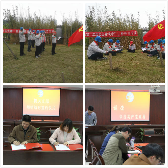 主題黨日+師徒結對。為了幫助新任職員工能夠快速的勝任工作,機關(guān)支部為6名職工進(jìn)行了師徒結對。青年職工身上創(chuàng )新的能力、工作的激情感染著(zhù)老師傅;老師傅更是把自己的一切毫無(wú)保留地傳授給徒弟,帶徒弟的過(guò)程也是在不斷完善自己,取人之長(cháng),補己之短。這是一個(gè)師徒相長(cháng)的過(guò)程,師徒在活動(dòng)中,互相學(xué)習,互相幫助,努力提高自身素質(zhì),共同獲得了提高。