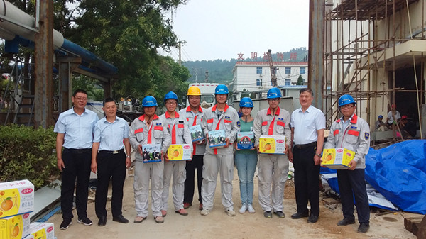 7月28日上午,公司黨委書(shū)記吳再忠、經(jīng)理孫政權、工會(huì )主席王志軍一行深入氨綸施工現場(chǎng)走訪(fǎng)慰問(wèn)一線(xiàn)職工,送去深切的關(guān)懷和慰問(wèn),把防暑慰問(wèn)品送到大家手中。在氨綸施工現場(chǎng),孫經(jīng)理同現場(chǎng)員工親切交談,叮囑他們在保質(zhì)保量完成工作任務(wù)的同時(shí)更要關(guān)心職工的身心健康。
