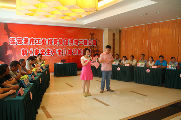 為了增強企業(yè)員工的安全意識,強化安全生產(chǎn)依法治理。近日,公司在淮鹽大酒店舉行安全知識搶答賽。來(lái)自該公司機關(guān)及各單位的8支代表隊共24名選手參加了比賽。