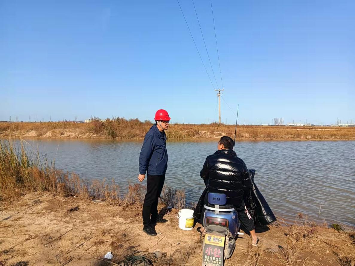 “千萬(wàn)不要在高壓線(xiàn)下釣魚(yú),太危險了!”10月27月,徐南供電所所長(cháng)孫維兵在高壓線(xiàn)路下勸離池塘邊垂釣者。