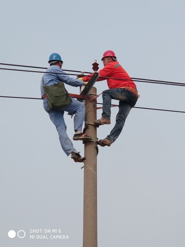5月2日,張圩新農村小區配電安裝工程施工現場(chǎng),一根15米的電線(xiàn)桿上,榮獲集團“技能大師”稱(chēng)號的王建采用實(shí)踐教學(xué)的方法,親自為新員工祁明智做登桿、金具安裝、導線(xiàn)捆綁等示范操作,促其盡快掌握技術(shù)要領(lǐng)。
