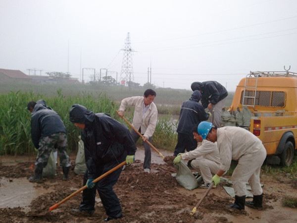 徐圩供電所接到防風(fēng)防暴指令后,立即組織全所人員進(jìn)入應急防汛狀態(tài)。