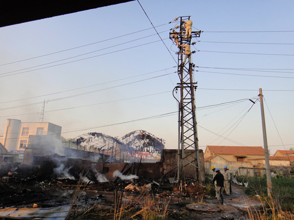 4月20日下午1:30左右燒香河大橋旁廢品收購站起火,大火借助風(fēng)勢向南直沖大橋,將橋北的高壓線(xiàn)路燒毀,臺南供電所立即組織人員搶修,及時(shí)將受災線(xiàn)路修復送電,避免了損失進(jìn)一步擴大。