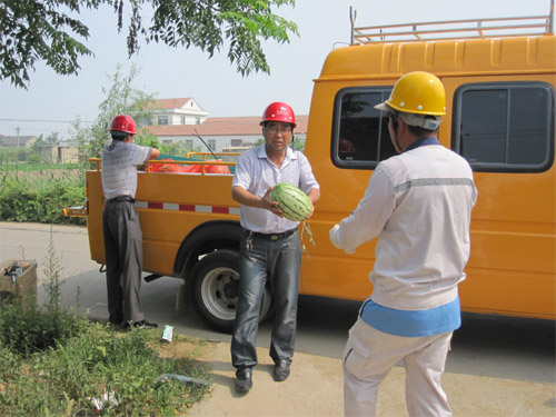 驕陽(yáng)似火,酷暑難當。近日,青口供電所領(lǐng)導班子帶著(zhù)西瓜、毛巾、礦泉水等防暑降溫物品,深入接戶(hù)線(xiàn)改造現場(chǎng),為一線(xiàn)職工送去一份關(guān)懷、一份情誼、一份清涼。同時(shí)希望他們面對持續的高溫天氣要做好防暑降溫和安全防護工作,防止中暑事件的發(fā)生。(王學(xué)忠)
