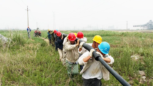 16日上午6點(diǎn)鐘左右,該所集合全部力量趕赴縱4路工程現場(chǎng)。在施工過(guò)程中,由于電纜線(xiàn)外套波紋管工作無(wú)法用機械完成,只能人工作業(yè)。該所除登高和外派作業(yè)人員外,其余人員密切配合,通力協(xié)作。他們不分工種、不計得失、不遺余力,喊著(zhù)口號、邁著(zhù)步子,用肩膀抗著(zhù)波紋管,一步一個(gè)腳印,終于在中午12點(diǎn)成功將150米電纜套上波紋管。結束后才發(fā)現很多人的肩膀都磨出了淤血。為了搶在市網(wǎng)送電之前完成線(xiàn)路改造,該所在中午1點(diǎn)左右繼續趕工,最終在3點(diǎn)前將線(xiàn)路鋪設到位。(張偉孫維兵)