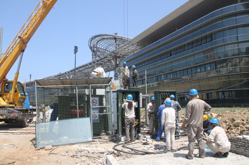 該所在承攬此項工程后,克服施工時(shí)間緊、現場(chǎng)地形復雜、交叉作業(yè)多等困難,精心策劃、周密部署,嚴格按照工程施工預案,在演藝廣場(chǎng)和美食街地段新增一條10千伏電源,改造兩處10千伏電源進(jìn)口,敷設5公里10千伏高壓電纜,設置11臺電源分支箱、3臺路燈廂變,安裝5臺400千伏安變壓器,最終形成了一個(gè)主供、兩個(gè)備用的供電輸送網(wǎng)格局。