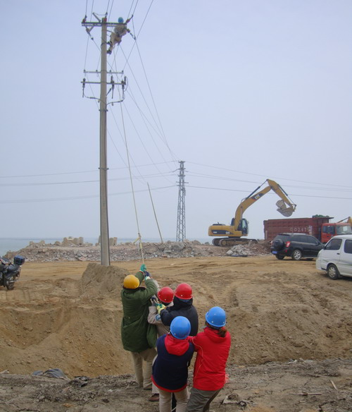 11月17日,臺北供電所全體職工放棄休息,在開(kāi)發(fā)區大浦工業(yè)園區架設供電線(xiàn)路,保證園區建設單位按時(shí)開(kāi)工。
