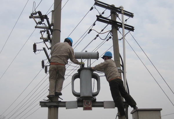 圖為該所職工在黃下線(xiàn)養殖場(chǎng)公變進(jìn)行檢修 近期,青口供電所在公司抽調精兵強將以決戰利海110KV變電站工程、所里人力十分緊張的情況下,合理進(jìn)行人力調配,組織職工加班加點(diǎn),對供電設備全面進(jìn)行檢修,確保秋冬季節設備安全供電。(宋中文)