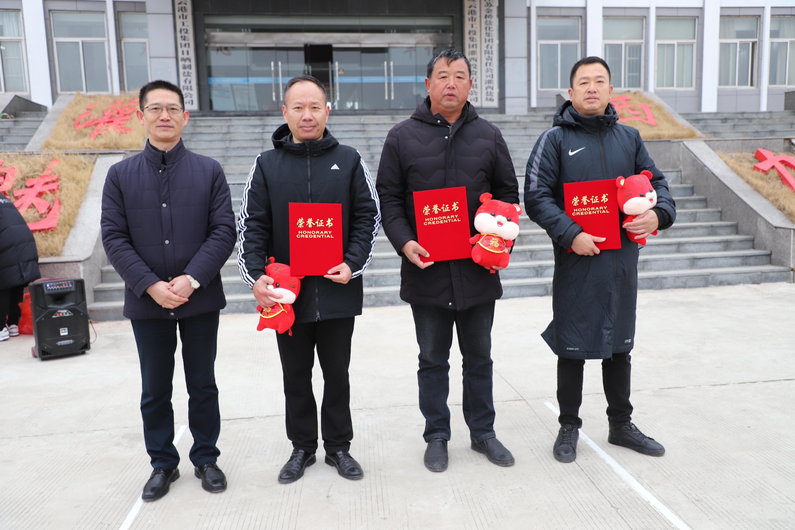 閉幕式上宣布新河制鹽公司、埒南制鹽公司、宵洋物流公司分獲團體一至三名,并頒發(fā)團體以及個(gè)人榮譽(yù)證書(shū),為每位獲獎?wù)甙l(fā)放灌西投資公司吉祥物——“鹽寶寶”。(西宣)