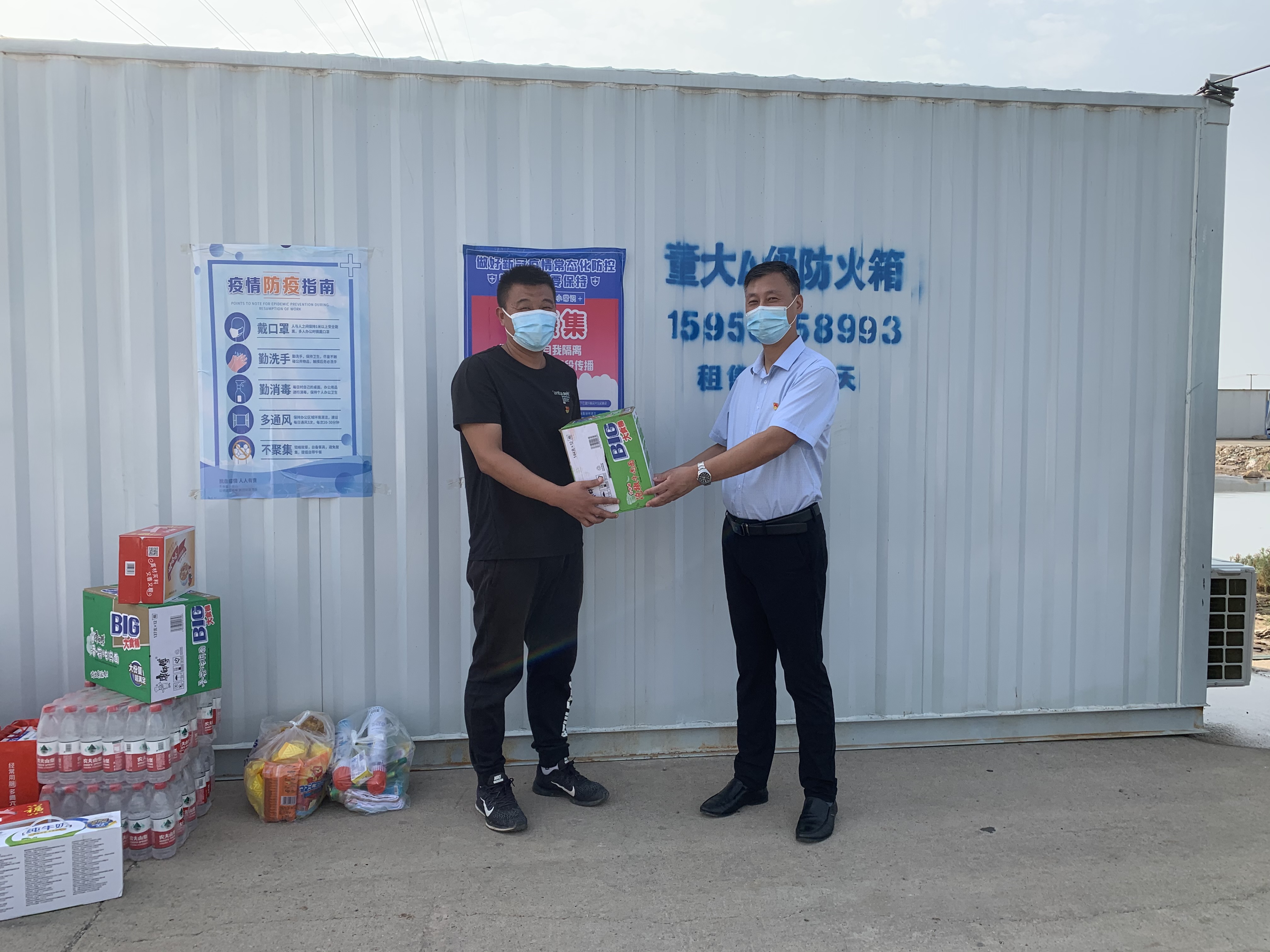 在各個(gè)路口卡點(diǎn),公司領(lǐng)導向始終堅持在疫情防控一線(xiàn)的工作人員及志愿者們致以親切問(wèn)候和衷心感謝,叮囑大家要強化自我防護,嚴格按照標準、程序、規范做好疫情防控工作,攜手共筑防疫屏障,并親手為他們送上、牛奶、八寶粥、方便面、蚊香等慰問(wèn)物資。(西工)