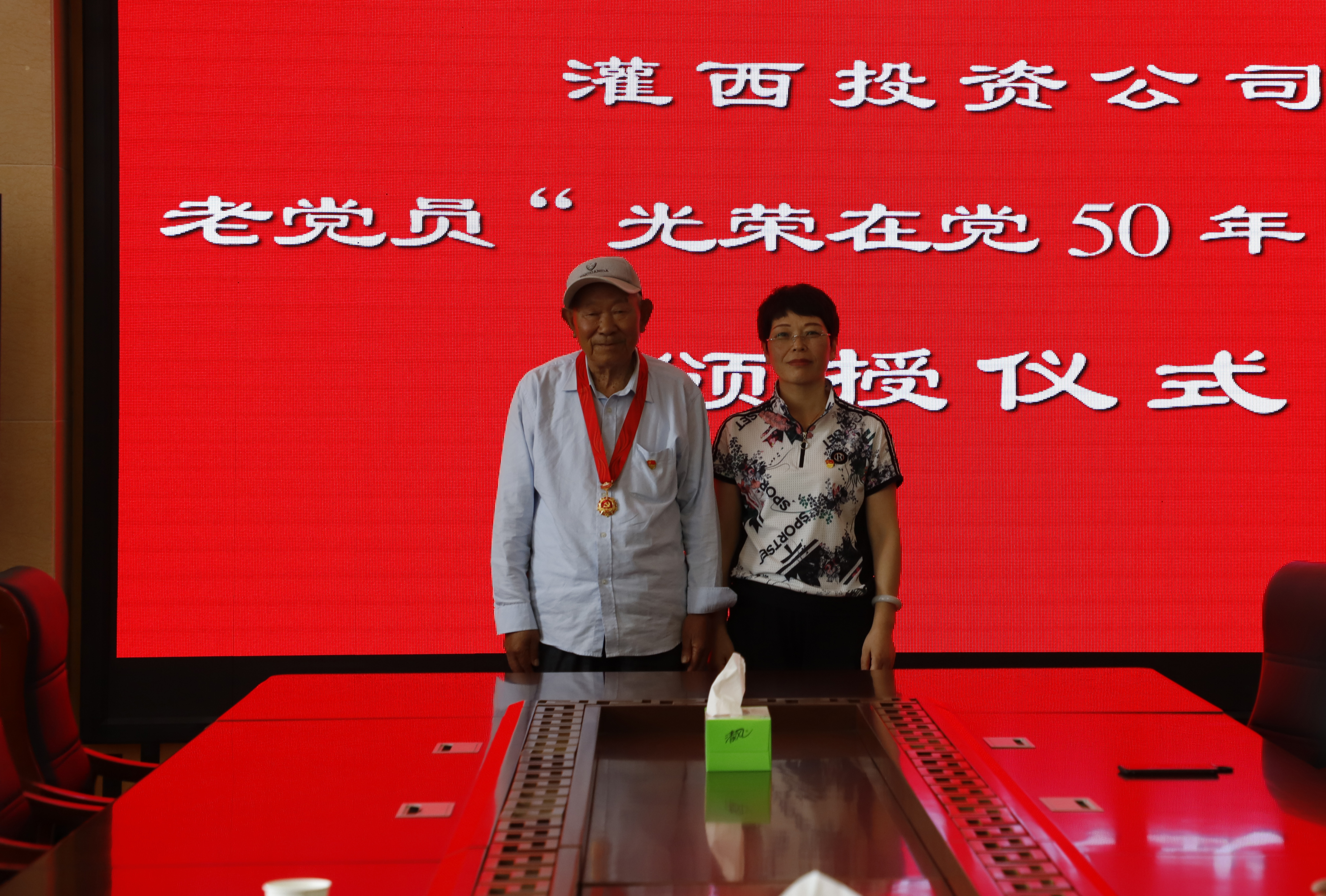 “五十年黨齡,五十載光榮”。6月29日下午,灌西“光榮在黨50年”紀念勛章頒授儀式在機關(guān)三樓舉行,投資公司黨委副書(shū)記、工會(huì )主席王宏向黨齡達到50年的兩位老黨員代表頒發(fā)紀念章,工會(huì )、黨群、紀委人員參加頒發(fā)儀式。