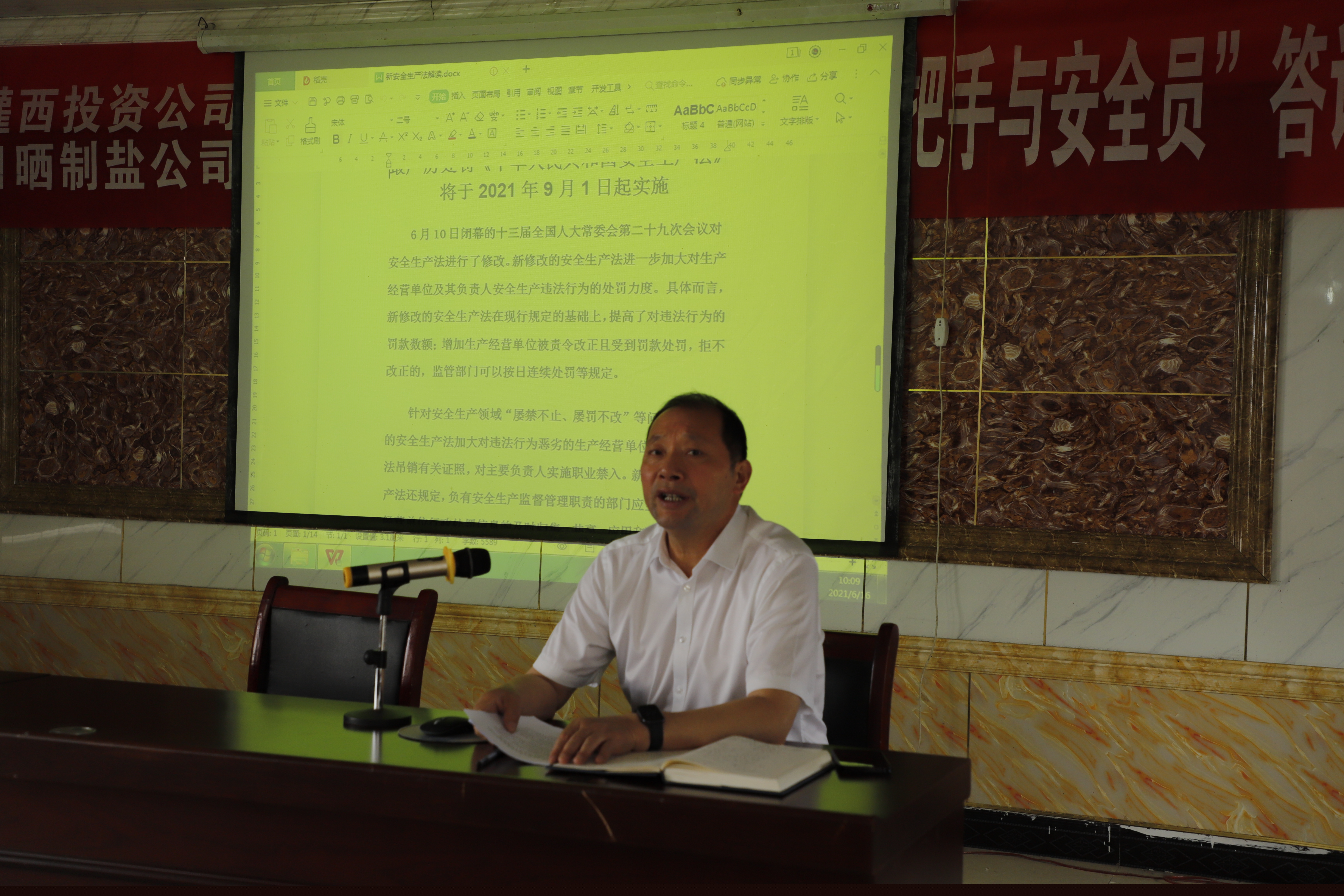 李國文帶領(lǐng)大家集中學(xué)習了新版《安全生產(chǎn)法》及傳達了集團公司二季度安委會(huì )(擴大)會(huì )議精神,并提出了三點(diǎn)要求、五個(gè)方面不能出事、五個(gè)方面不允許、做到五個(gè)保證。