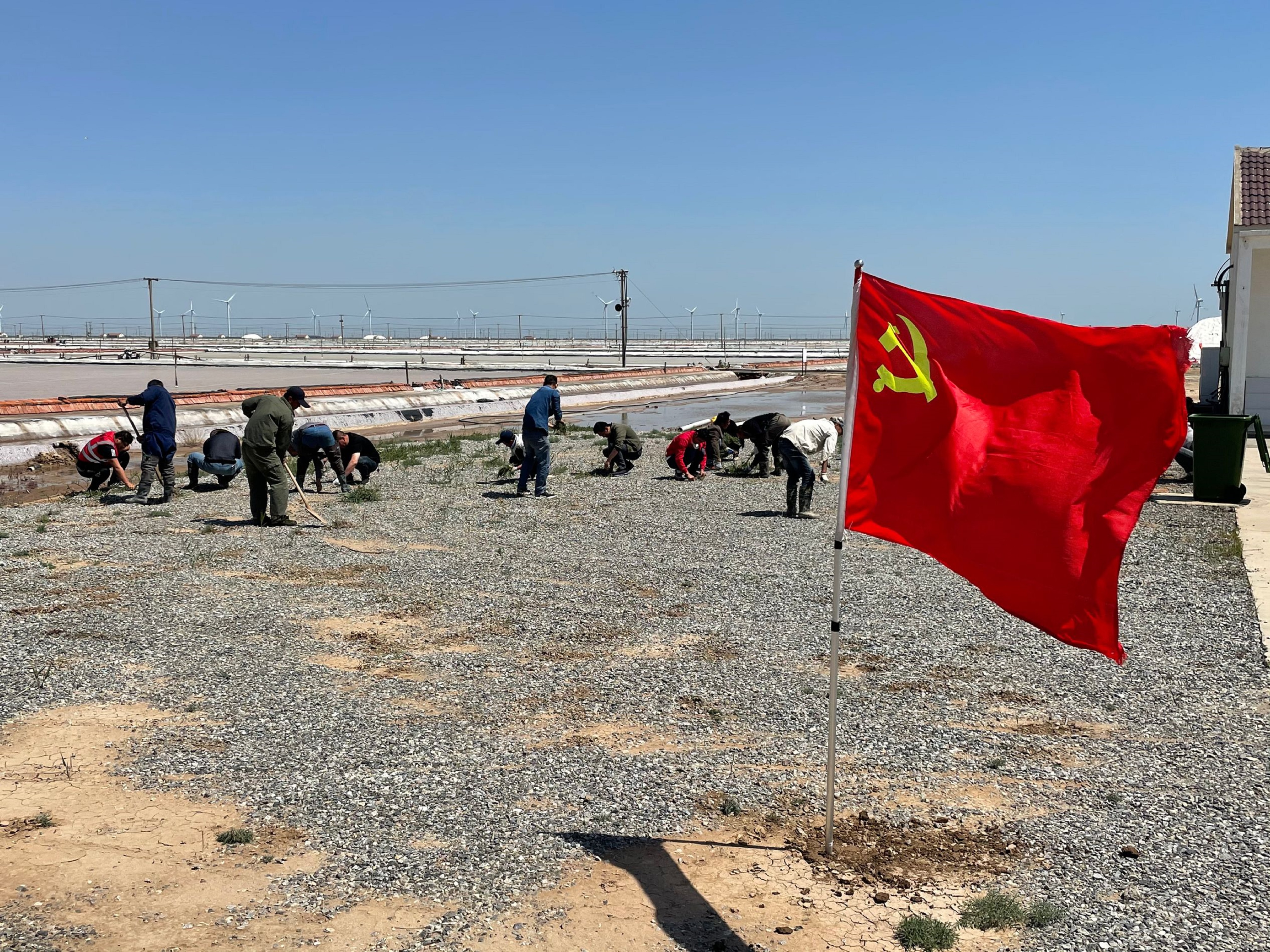 服務(wù)經(jīng)濟發(fā)展,爭做創(chuàng )業(yè)先鋒。公司黨委在每個(gè)黨支部分別成立一個(gè)黨員志愿服務(wù)隊,廣泛開(kāi)展志愿服務(wù)活動(dòng)。以“黨員爭當服務(wù)先鋒”為主題,開(kāi)展“志愿服務(wù)到一線(xiàn),志愿服務(wù)進(jìn)基層”系列活動(dòng),吸引了大批黨員志愿者深入灘頭、塘頭、碼頭、田頭等生產(chǎn)一線(xiàn)開(kāi)展服務(wù)活動(dòng)。原鹽生產(chǎn)一線(xiàn)各黨支部組織黨員志愿者開(kāi)展集中清除雜草、修整生產(chǎn)路等系列志愿服務(wù)活動(dòng);結合勞模工作室、黨員示范崗、黨員樣板灘等平臺,開(kāi)展小改小革、技術(shù)創(chuàng )新活動(dòng)和技術(shù)創(chuàng )新成果推廣應用方面發(fā)揮了表率作用。