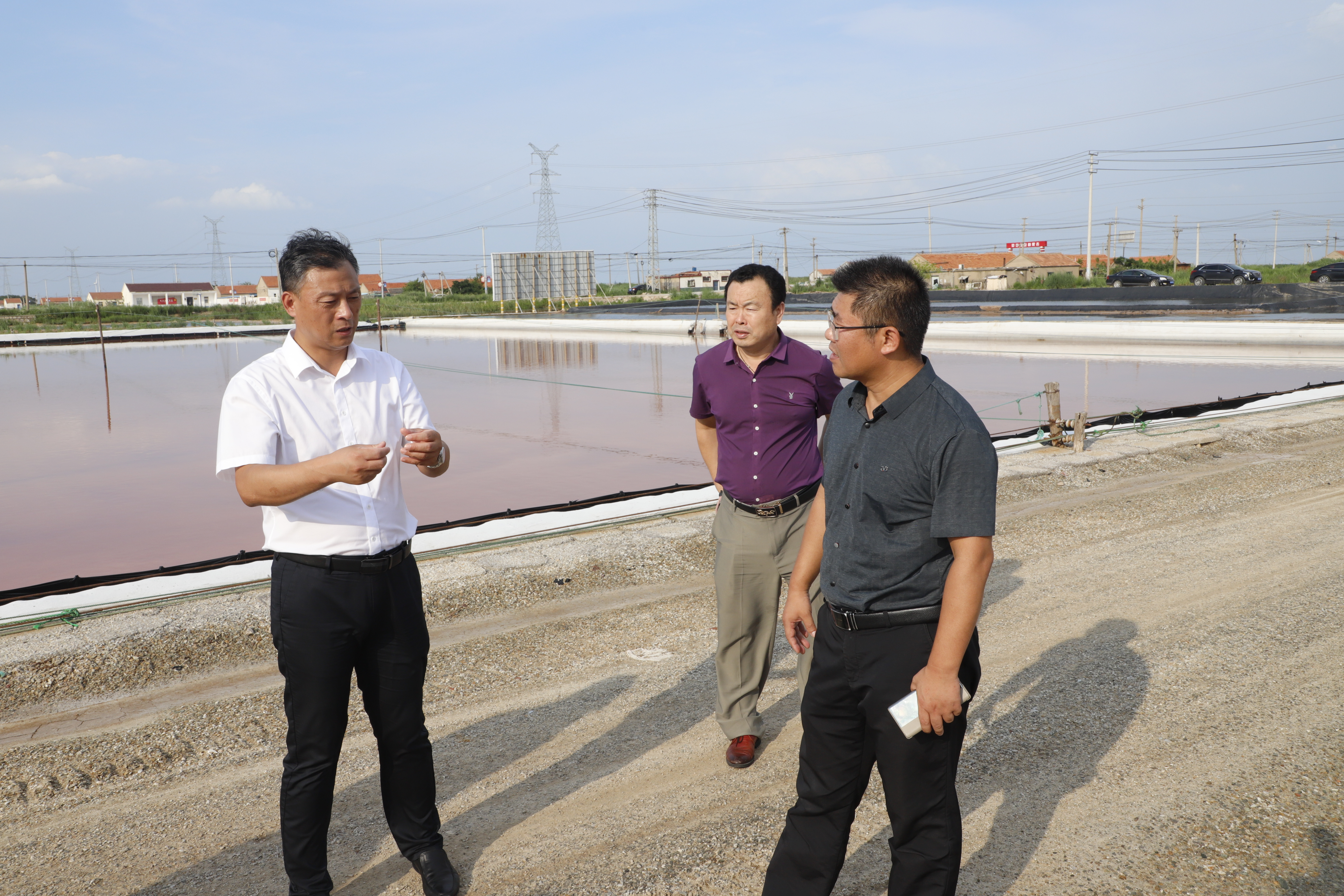 8月12日,連云港市王盡美研究會(huì )一行驅車(chē)100多公里來(lái)灌西采風(fēng)。灌西投資公司常務(wù)副總經(jīng)理吳衛平、黨委副書(shū)記、工會(huì )主席王宏陪同大家先后到日曬制鹽生產(chǎn)灘場(chǎng)、安樹(shù)林勞模創(chuàng )新工作室和公濟公司舊址,感受淮鹽的發(fā)展變化,見(jiàn)證鹽業(yè)生產(chǎn)的轉型崛起。