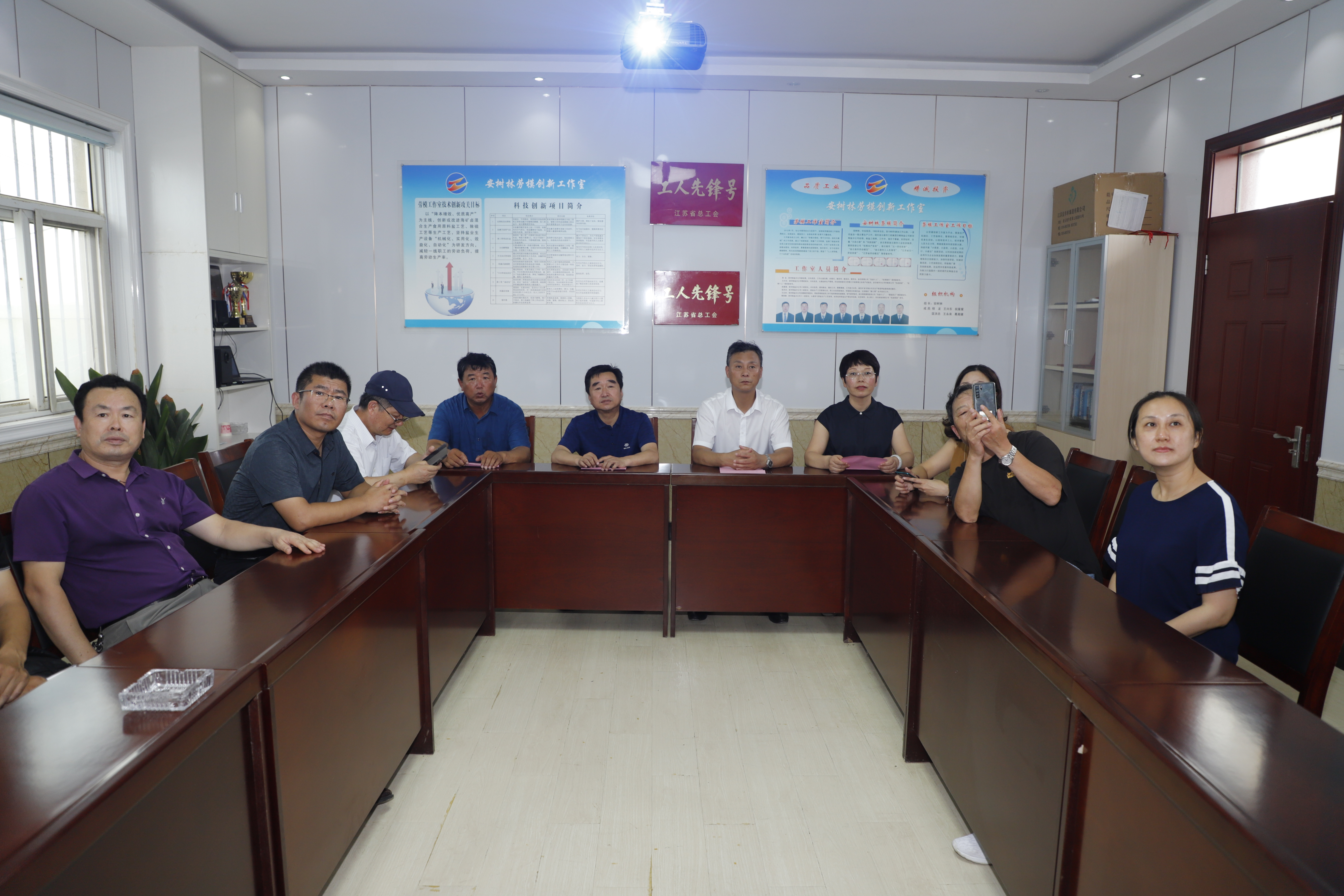 隨后,在安樹(shù)林勞模創(chuàng )新工作室,王盡美研究會(huì )一行觀(guān)看了江蘇省工人先鋒號“安樹(shù)林勞模創(chuàng )新工作室技術(shù)創(chuàng )新成果展示”宣傳片。參觀(guān)了有百年歷史的連云港市文物保護單位“公濟公司舊址”。公濟公司的前身叫濟南鹽場(chǎng),始建于1911年,公司駐地舊址在今灌西中二圩路北點(diǎn)415號。這一建筑群座北朝南,整體呈正方形。西側是輔助用房,東側是兩個(gè)獨立的三合院,中間則是日字形四合院。建筑群占地約500平方米,有房屋30余間。面對已經(jīng)百年的老建筑,一行人員議論起當年王盡美來(lái)到連云港市對鹽業(yè)工運活動(dòng)的影響,并認為對公濟公司歷史的研究,有助于對淮鹽文化歷史的了解。(西宣)