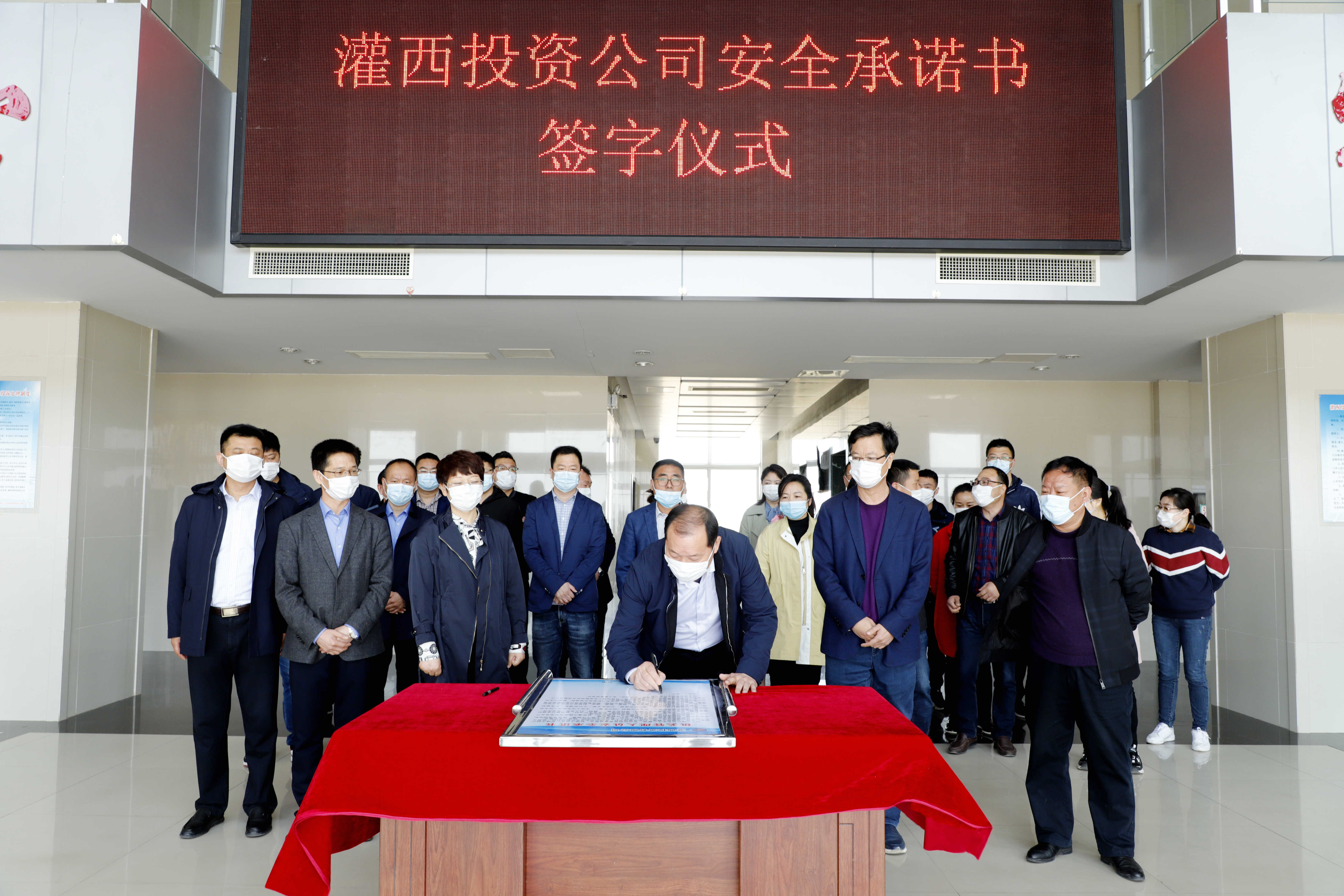 為確保安全生產(chǎn)工作的落實(shí),4月28日上午,灌西公司舉行了安全生產(chǎn)承諾書(shū)簽字儀式。在布置一新的簽字現場(chǎng),黨委書(shū)記、董事長(cháng)、總經(jīng)理李國文帶頭在承諾書(shū)上鄭重地簽下了自己的名字。