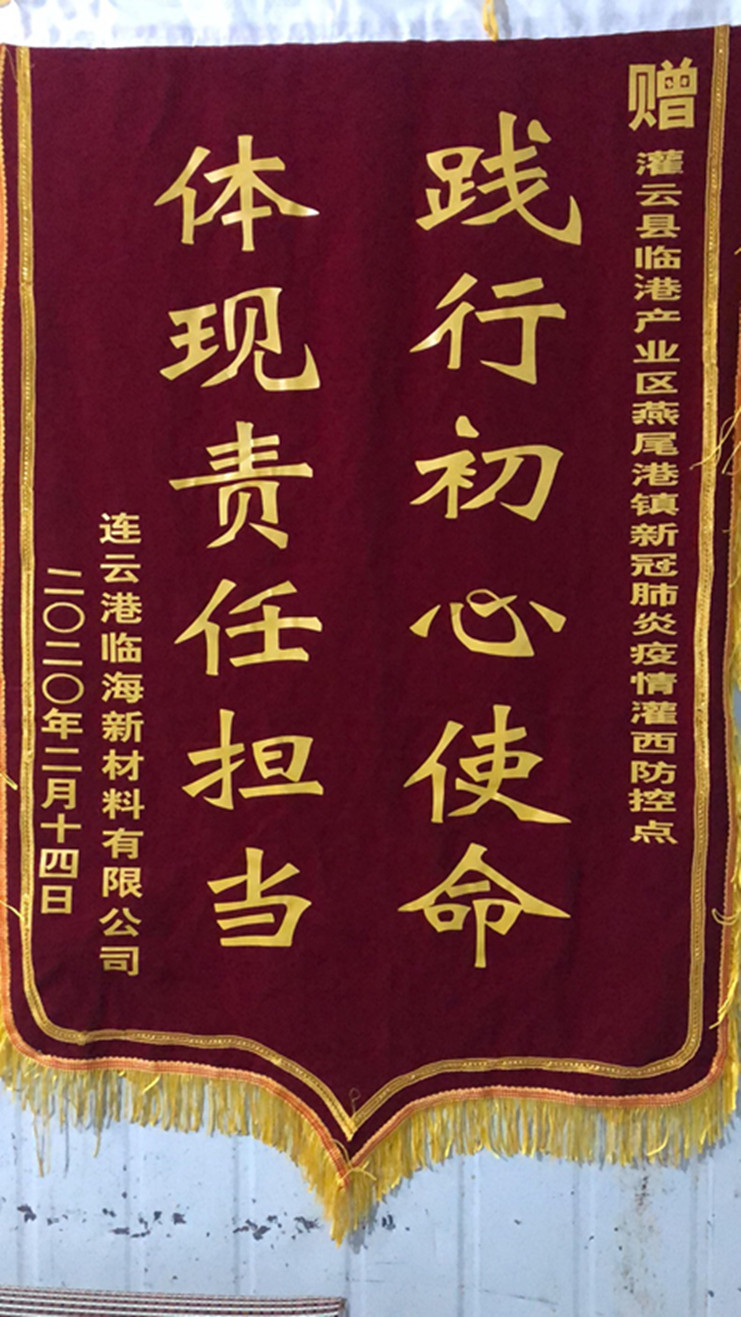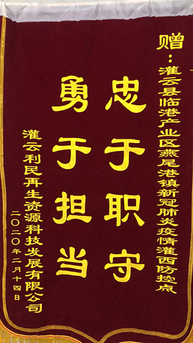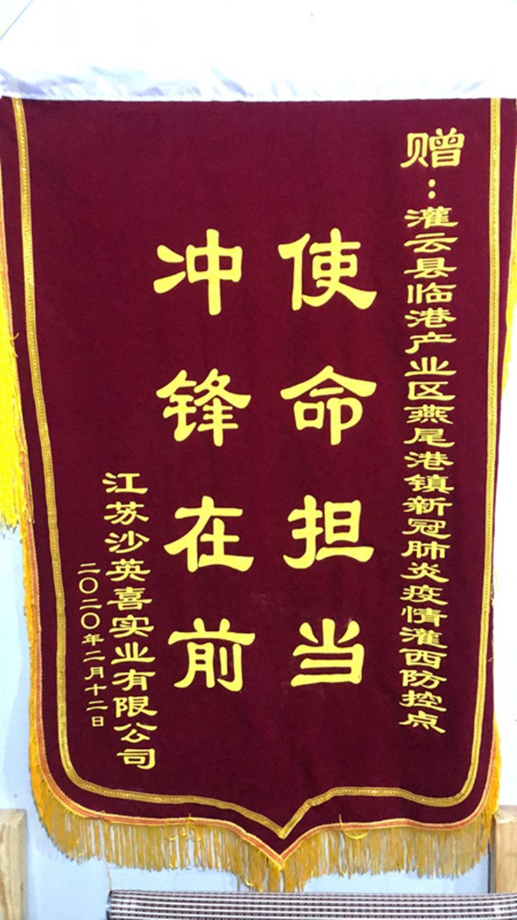 “非常感謝你們對我們三家公司的守護,為我們廣大職工筑牢了一道防疫情的銅墻鐵壁,你們辛苦了!”近日,連云港臨海新材、灌云利民再生資源、江蘇沙英喜三家公司分別為新冠肺炎疫情灌西防控點(diǎn)值守人員送來(lái)三面錦旗,感謝灌西投資公司值守人員在疫情期間為疫情防控工作作出的貢獻。