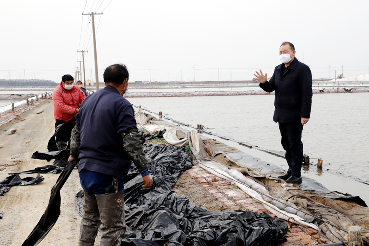 李國文首先來(lái)到日曬制鹽公司生產(chǎn)灘頭,現場(chǎng)察看復工復產(chǎn)情況。徒步灘頭,有的在補塑布、有的在修整廩基、有的在更換塑布,每個(gè)班組都在搶抓時(shí)間準備春扒工作。隨后李國文先后前往西旺養殖池塘、明威田頭、宵洋物流碼頭,每到一處都詳細詢(xún)問(wèn)職工口罩、消毒酒精等防護物資夠不夠用,有沒(méi)有外地回來(lái)的員工,并叮囑員工少接觸外地回來(lái)人員,錯開(kāi)上下班時(shí)間,外出要帶口罩,保護好自己才能更好的為企業(yè)創(chuàng )造效益。