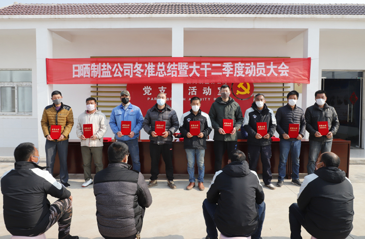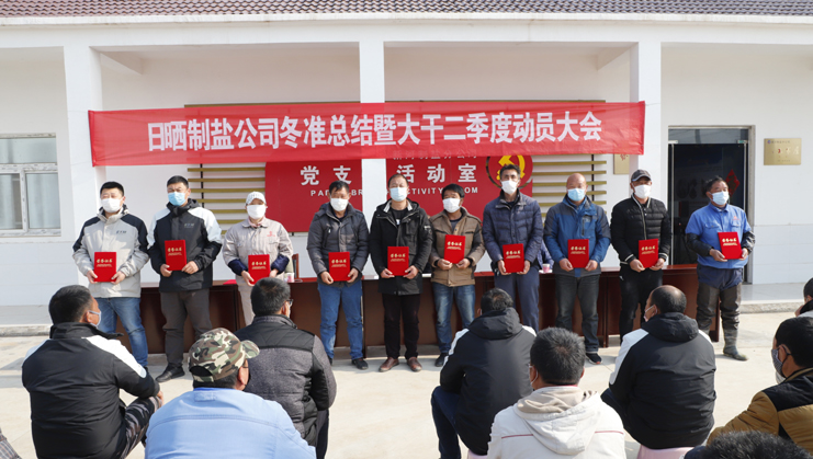 3月18日,日曬制鹽公司在新河制鹽分公司生產(chǎn)灘頭召開(kāi)冬準總結暨大干二季度動(dòng)員大會(huì ),黨委書(shū)記、董事長(cháng)、總經(jīng)理李國文主持會(huì )議并講話(huà),為完成2020年各項生產(chǎn)工作再動(dòng)員、再發(fā)力、再部署、再出發(fā),幫失去的時(shí)間搶抓回來(lái)。常務(wù)副總經(jīng)理古浩光對冬準工作進(jìn)行了全面總結,并對二季度工作進(jìn)行了安排部署。黨委副書(shū)記、紀委書(shū)記、工會(huì )主席王宏宣讀了冬準勞動(dòng)競賽表彰決定和大干二季度勞動(dòng)競賽方案。