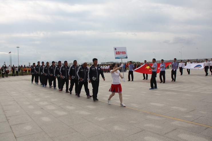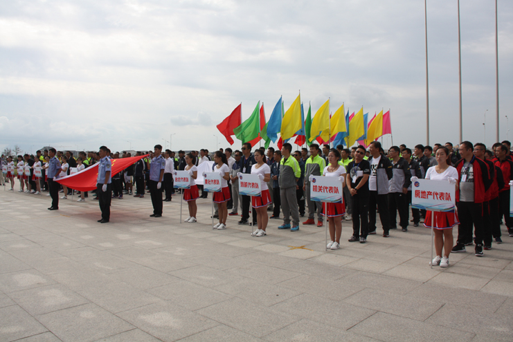 9點(diǎn)整開(kāi)始舉行開(kāi)幕式,在雄壯的《運動(dòng)員進(jìn)行曲》中,8名司旗手分別手托國旗和集團公司司旗,24名彩旗手高舉五彩旗首先入場(chǎng)。緊接著(zhù),灌西代表隊、臺北代表隊、供電代表隊、黃化制鈣代表隊、利海代表隊、氯堿代表隊、徐圩代表隊、機關(guān)代表隊、華茂代表隊、房地產(chǎn)代表隊、氨綸代表隊、新材料代表隊12支代表隊、130余名運動(dòng)員以及裁判組成員依次入場(chǎng)。