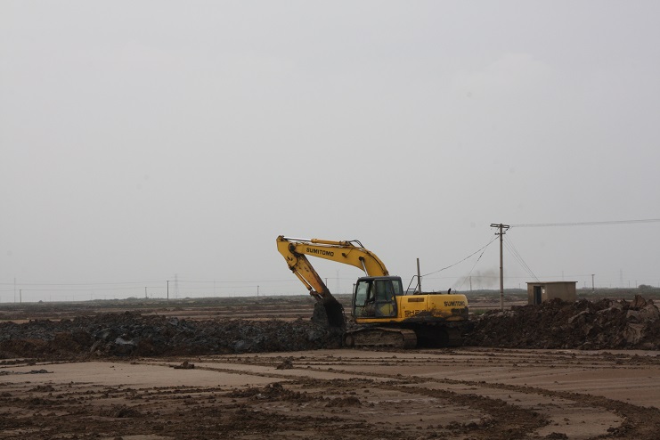 10月20日,我們在原來(lái)的鈣液復曬灘地看到,整個(gè)復墾區一眼望去,灘地象被翻過(guò)一遍,原來(lái)的鹽格灘池已經(jīng)面目全非,只見(jiàn)三臺挖掘機正揮舞巨臂,將淤泥挖出涼曬。南翼公司工程項目組長(cháng)期值守在項目工地,跟蹤管理,積極推進(jìn)工程安全有序推進(jìn)。