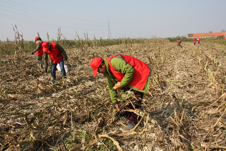 目前,位于柴門(mén)居民點(diǎn)附近的灌西實(shí)業(yè)公司農田已進(jìn)入作物收獲期,由于所種玉米已經(jīng)完全成熟,且經(jīng)歷了一次大風(fēng)降溫天氣,所以在機械進(jìn)場(chǎng)作業(yè)前,有部分玉米已經(jīng)掉落在了地上,如不及時(shí)撿拾,將造成極大浪費。公司團委在得知這一消息后,立即組織近十名青年志愿者利用中午休息時(shí)間,到該公司農田開(kāi)展撿拾散落玉米志愿服務(wù)活動(dòng)?;顒?dòng)中,大家手拿編織袋,排成橫排仔細搜尋并緩慢向前推進(jìn)。由于玉米皮與秸稈顏色相近且混雜在一起很難分辨,因此大家在撿拾過(guò)程中不僅需要認真搜尋,有時(shí)還需要彎腰翻動(dòng)秸稈,以最大限度的不遺漏任何一個(gè)散落的玉米。