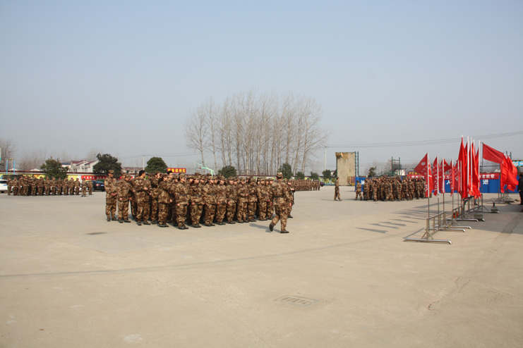 2月28日,灌云實(shí)訓基地,“三大紀律八項注意”軍歌響徹全場(chǎng),軍事訓練區的橫幅標語(yǔ)“苦不苦想想紅軍二萬(wàn)五,累不累看看革命老前輩”十分醒目。“稍息、立正、向右看齊……”隨著(zhù)教官們的口令聲,只見(jiàn)灌西投資公司30名“80”后青年管理人員與縣屬單位公職人員身穿迷彩服,一起列隊,在教官的示范下,正在一絲不茍地做各項動(dòng)作,按照指定動(dòng)作要領(lǐng),站立軍姿,快速進(jìn)入了角色。