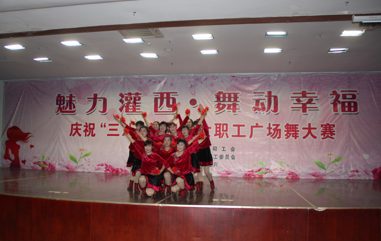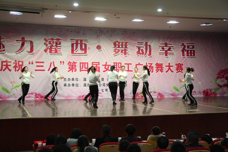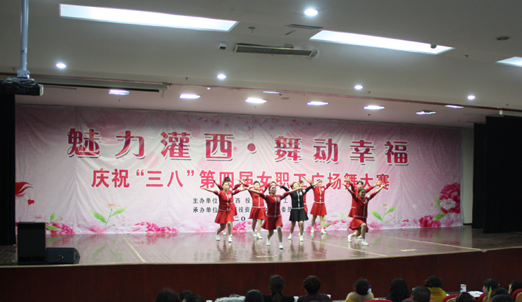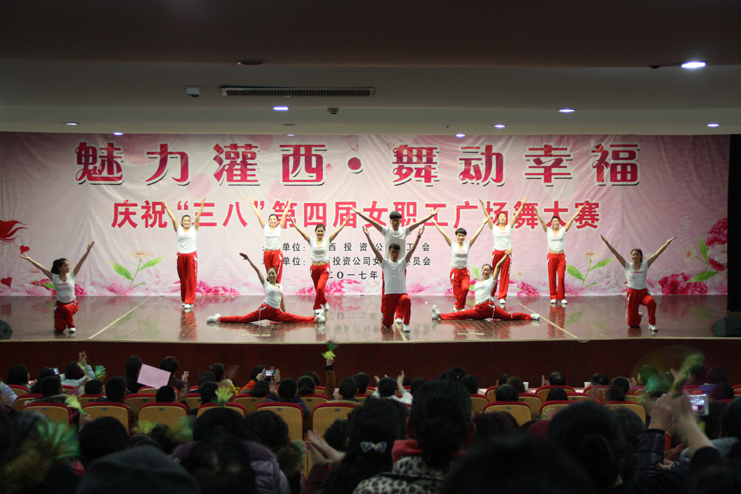 3月8日下午,灌西投資公司第四屆“魅力灌西•舞動(dòng)幸福”廣場(chǎng)舞比賽在灌云縣臨港產(chǎn)業(yè)區管委會(huì )禮堂舉行,由公司各單位的女工組成的8支代表隊參加角逐,廣大女工用婀娜的舞姿和精彩的表演慶祝國際“三八”婦女節的到來(lái),觀(guān)看比賽的職工群眾有400余人。
