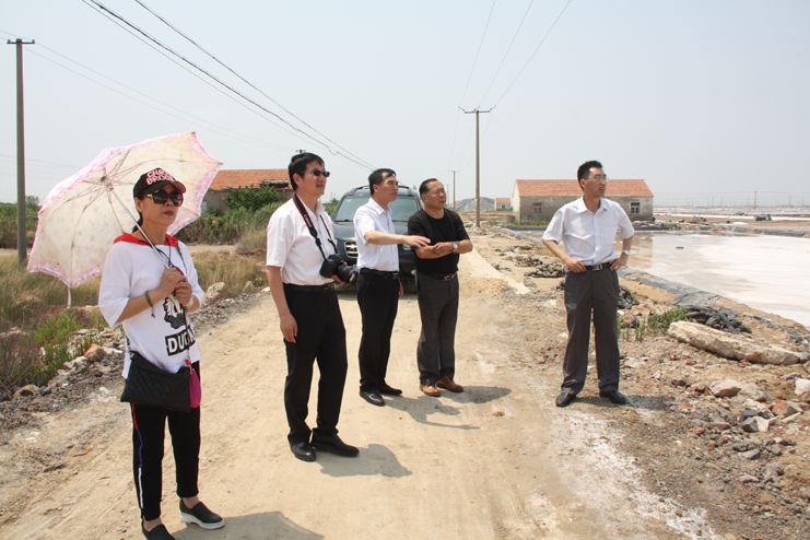 一行人先后到原民國時(shí)期公濟制鹽公司的辦公署遺址、早期產(chǎn)鹽平面灘和日曬制鹽公司的扒鹽現場(chǎng)參觀(guān)采風(fēng)。具有百年歷史的原公濟制鹽公司辦公署是灌西鹽場(chǎng)地區現存最古老的建筑物,也是整個(gè)淮鹽地區僅有的遺跡,隨著(zhù)歷史的變遷,房屋雖幾經(jīng)改建,破損嚴重,但主體結構仍然保留了下來(lái),是重要的淮鹽文化物證。位于鈣液復曬區的早期產(chǎn)鹽平面灘,是前不久為央視攝制組拍攝淮鹽發(fā)展歷史而改造的制鹽平面灘,復制了過(guò)去的制鹽工藝及生產(chǎn)過(guò)程,在平面灘上,大家拿起收鹽刮板,挑起鹽筐,手推小鹽車(chē),一一體驗一下過(guò)去鹽工們的勞動(dòng)方式。在新河制鹽分公司十班的扒鹽現場(chǎng),機聲隆隆,潔白鹽廩不斷壯大,這是日曬制鹽公司上半年最后一臺正在扒鹽的機組,其余的七臺扒鹽機組已經(jīng)先后完成的扒鹽任務(wù),正在進(jìn)行最后三塊格的扒鹽工作。大家一邊參觀(guān),一邊拍照,通過(guò)古今不同時(shí)期產(chǎn)鹽方式對比,對過(guò)去鹽工們的艱辛勞動(dòng)和現代制鹽技術(shù)的革新,生產(chǎn)力的提高都有了直接的感受,個(gè)個(gè)感觸頗深。(季興勝)