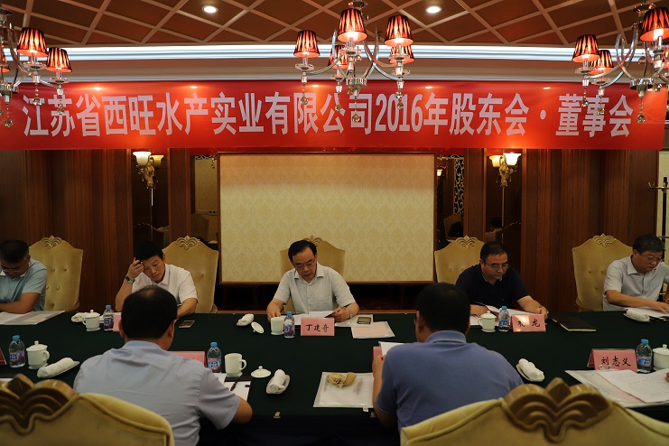 8月24日,江蘇省西旺水產(chǎn)實(shí)業(yè)公司2016年股東會(huì )、董事會(huì )在墟溝召開(kāi),省沿海開(kāi)發(fā)集團總經(jīng)理丁建奇、副總經(jīng)理周金陽(yáng),連云港市工業(yè)投資集團董事長(cháng)楊龍、總會(huì )計師匡友本等股東代表、董事代表出席了會(huì )議。