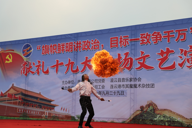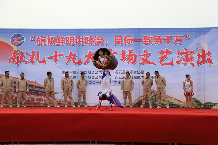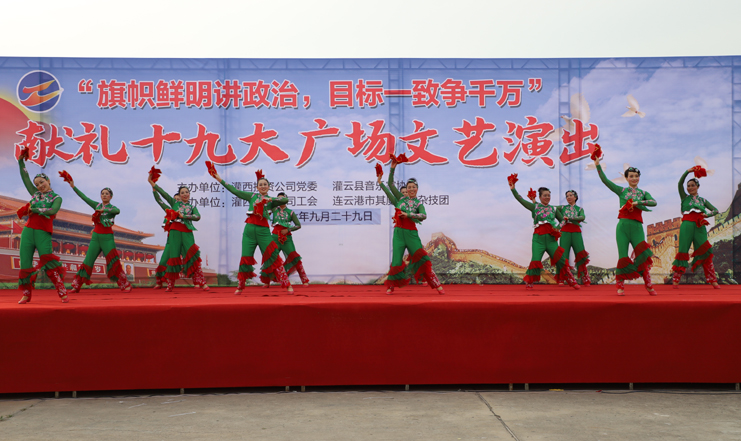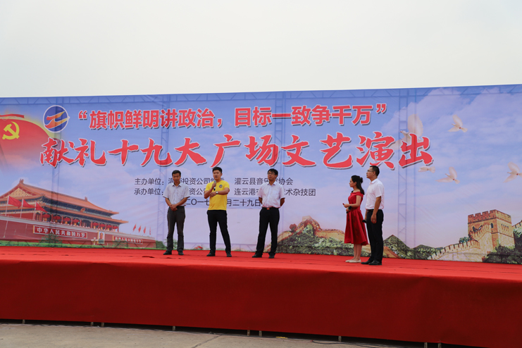 萬(wàn)紫千紅迎國慶,片片紅葉舞秋風(fēng)。9月29日下午,職工文化廣場(chǎng)內洋溢著(zhù)灌西人的歡聲笑語(yǔ),灌西投資公司“旗幟鮮明講政治,目標一致?tīng)幥f(wàn)”獻禮十九大廣場(chǎng)文藝演出在這里舉辦,用豐富多彩的節目祝福祖國、喜迎十九大!
