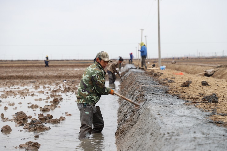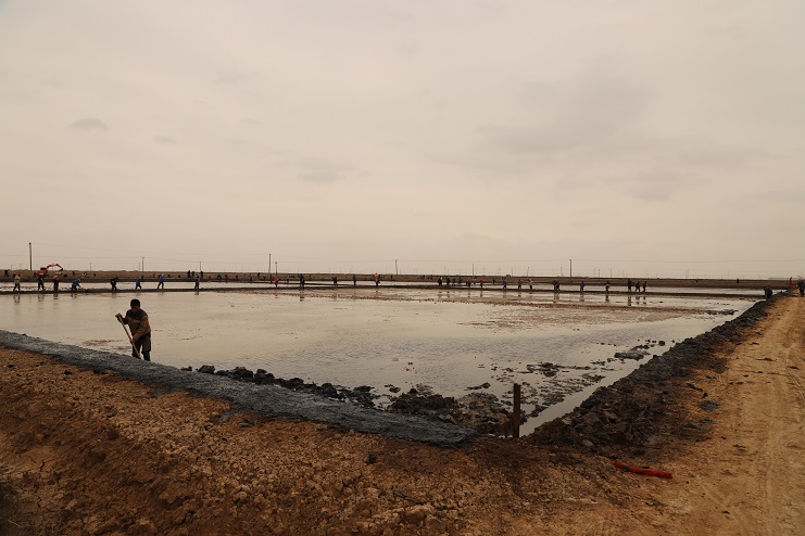 11月29日上午,雖然天氣寒冷,但是在海鹽基地新改造的制鹵灘上,卻到處是一派火熱的勞動(dòng)景象,參加“大會(huì )戰”的工人多達100余人,只見(jiàn)他們有的潑水,有的鏟泥,有的撈溝,有的做埝,大家分工協(xié)作。據了解,為了提高海水制鹵能力,確保海鹽產(chǎn)量,今年公司專(zhuān)門(mén)對海鹽基地部分廢棄灘地進(jìn)行了改造,以進(jìn)一步增加制鹵面積。近期,隨著(zhù)改造工程接近尾聲,公司又組織精干力量對新改造灘地繼續進(jìn)行修整,以確保新建的制鹵灘地能夠盡快投入使用,為明年海鹽生產(chǎn)工作的正常有序開(kāi)展奠定扎實(shí)的基礎。